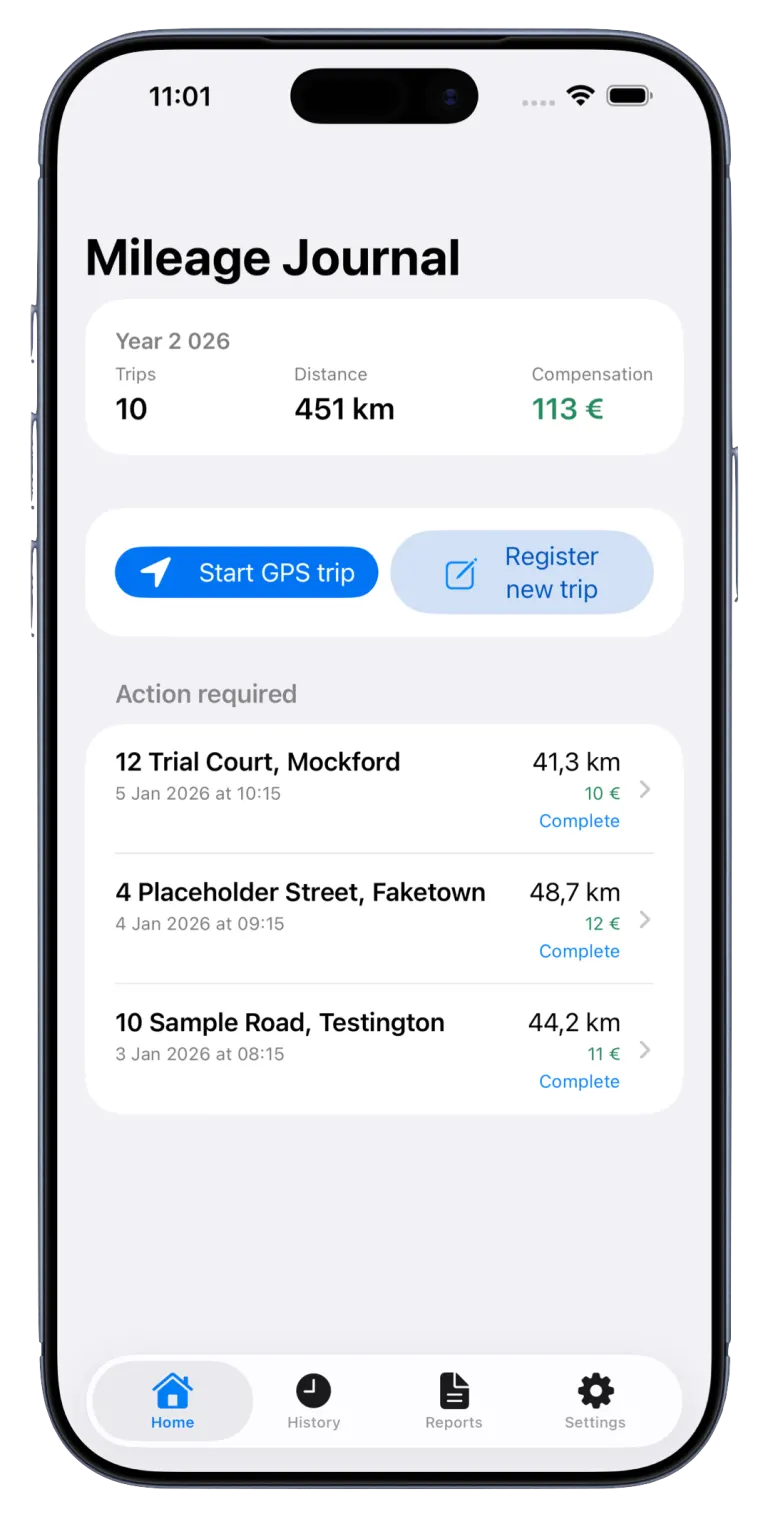 Ajopäiväkirja kirjaa GPS‑ajot luotettavasti, tukee useita yrityksiä, kuljettajia ja ajoneuvoja ja mahdollistaa projektien/projektinumeroiden merkitsemisen. Vie valmiit PDF‑ tai CSV‑raportit silloin kun tarvitset.